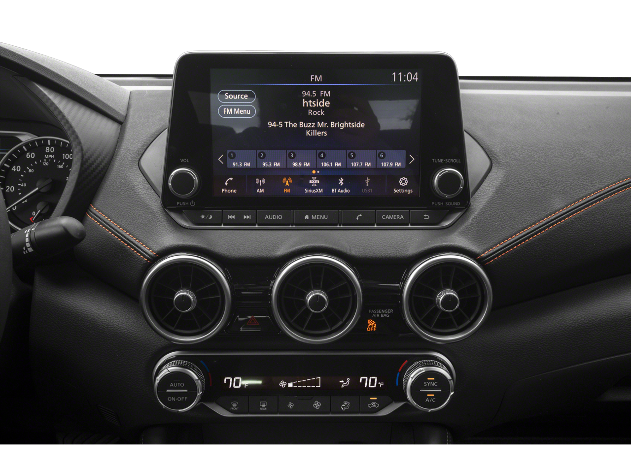 - Radio: AM/FM w/RDS/MP3/Aux-In -inc: 8" color display w/multi-touch control, streaming audio via Bluetooth®, Bluetooth® hands-free phone system, hands-free text messaging assistant, Siri eyes-free, Google Assistant voice recognition, NissanConnect featuring Apple CarPlay and Android Auto, 1 additional front USB (type C) and 1 charge-only USB (type A) center console and SiriusXM radio w/advanced audio features