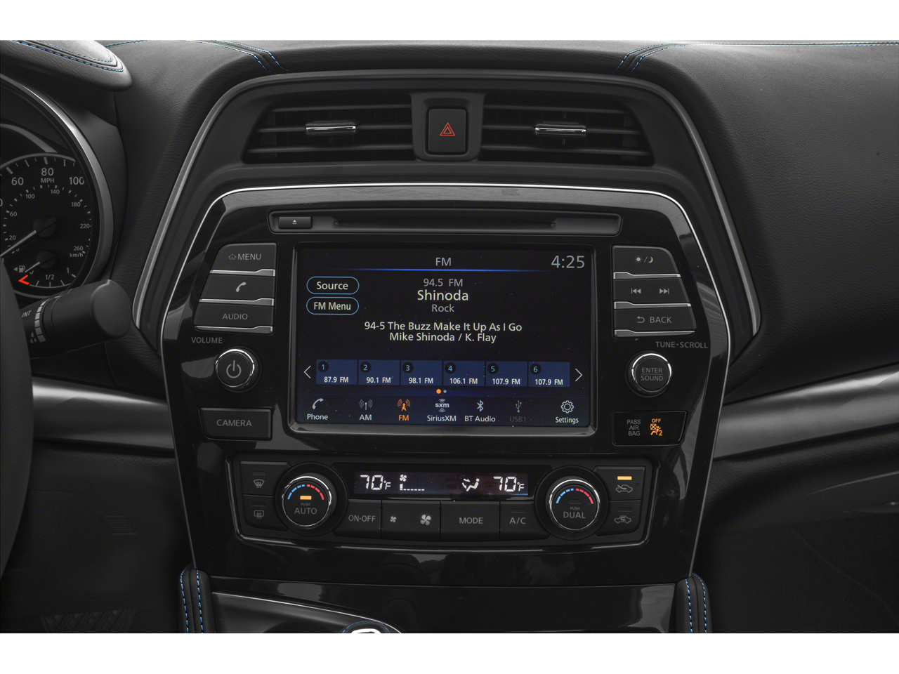 - Radio: AM/FM/CD Audio System -inc: MP3/WMA/AUX reader, 8 speakers, NissanConnect featuring 8" color display w/multi-touch control, Apple CarPlay, Android Auto, 2 front illuminated USB connection ports (1 Type-A, 1 Type-C), Bluetooth® hands-free phone system, hands-free text messaging assistant, streaming audio via Bluetooth®, voice recognition, Siri Eyes Free, SiriusXM radio, SiriusXM advanced audio features, NissanConnect services powered by SiriusXM, Wi-Fi hotspot, Nissan door to door navigation, SiriusXM Traffic, SiriusXM Travel Link, display commander and 7" Advanced Drive Assist Display (ADAD)