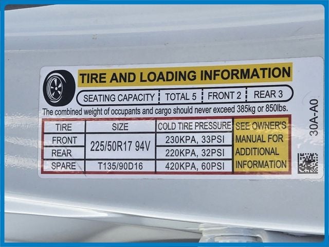 - Tires: 225/50R17 94V AS