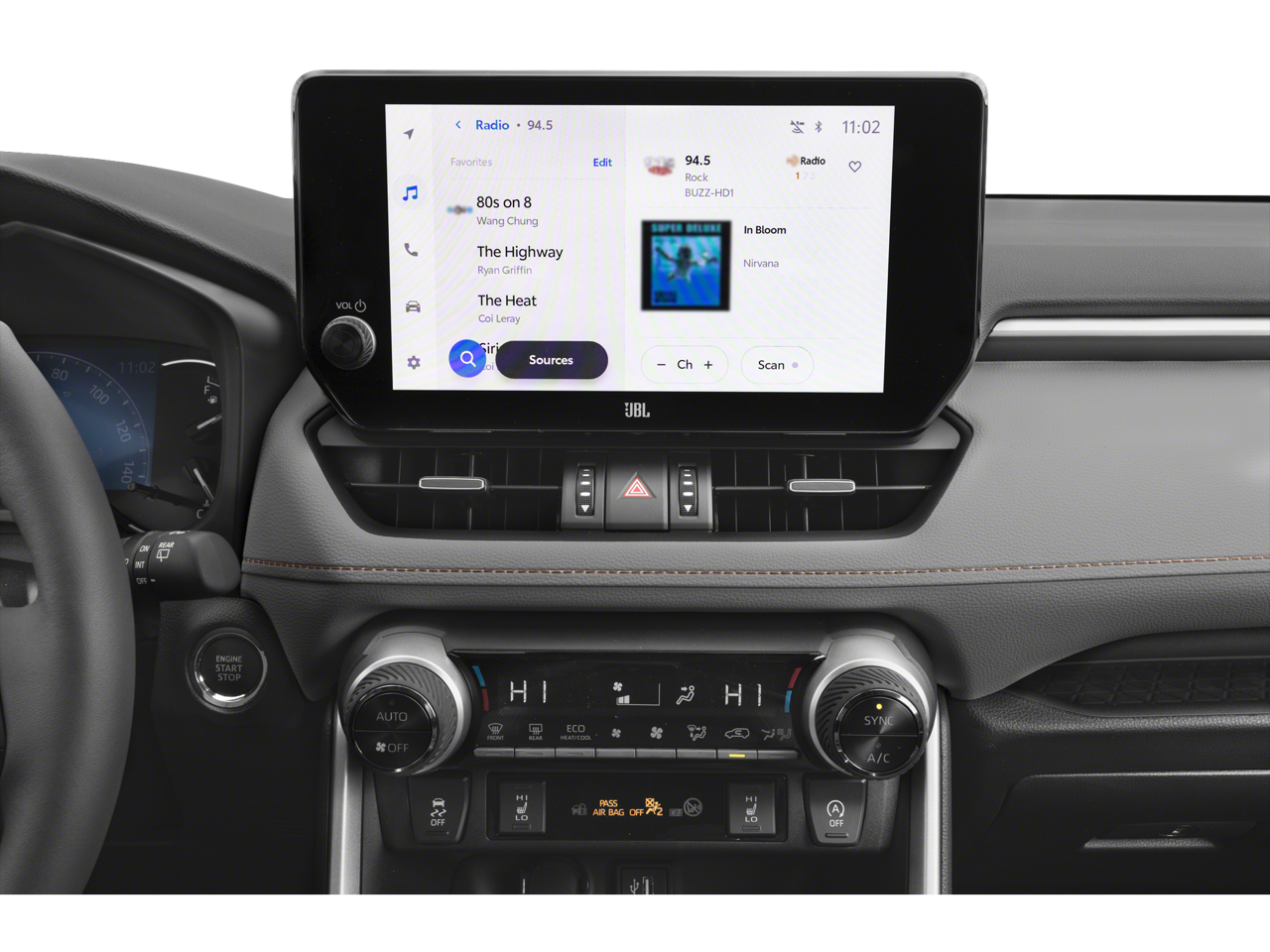 - Radio w/Seek-Scan, Clock, Speed Compensated Volume Control, Aux Audio Input Jack, Steering Wheel Controls, Voice Activation, Radio Data System and External Memory Control