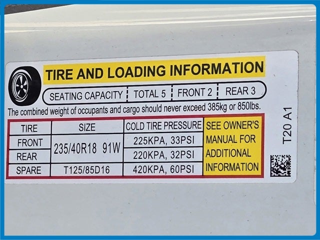 - Tires: 235/40R18 91W All-Season